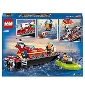 Lego-60373-City-Feuerwehrboot-Spielzeug-das-im-Wasser-schwimmt-mit-Rennboot-3-Minifiguren-und-Jetpack-Feuerwehr-Boot-Spielzeug-Geschenkidee-fuer-Jungen-und-Maedchen-ab-5-Jahren