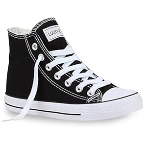 Sportliche-Damen-Sneakers-Stoff-Camouflage-Schnrer-Sneaker-High-Neon-Sport-Schuhe-26848-Schwarz-Ambler-46-Flandell