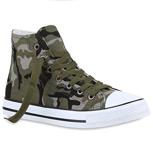 Sportliche-Damen-SneakersStoff-Camouflage-Schnrer-Sneaker-High-Neon-Sport-Schuhe-118809-Camouflage-Weiss-38-Flandell